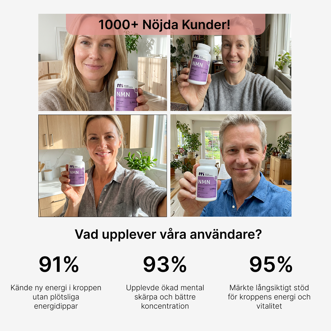 Vissa upplever mer energi och klarare fokus inom de första veckorna. Eftersom produkten verkar på cellnivå sker förändringarna gradvis och kan bli tydligare vid regelbunden användning över tid.