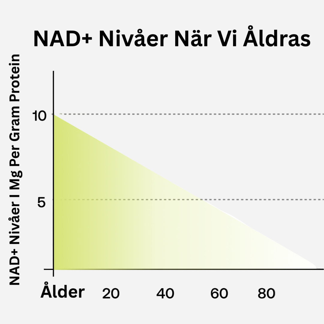 När vi blir äldre minskar kroppens nivåer av NAD – en molekyl som är avgörande för cellernas energiproduktion och reparationsförmåga. När NAD sjunker kan kroppen börja kännas tröttare, fokus försämras och återhämtningen bli långsammare.